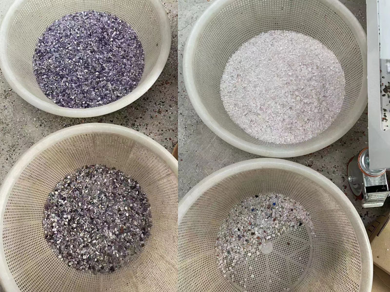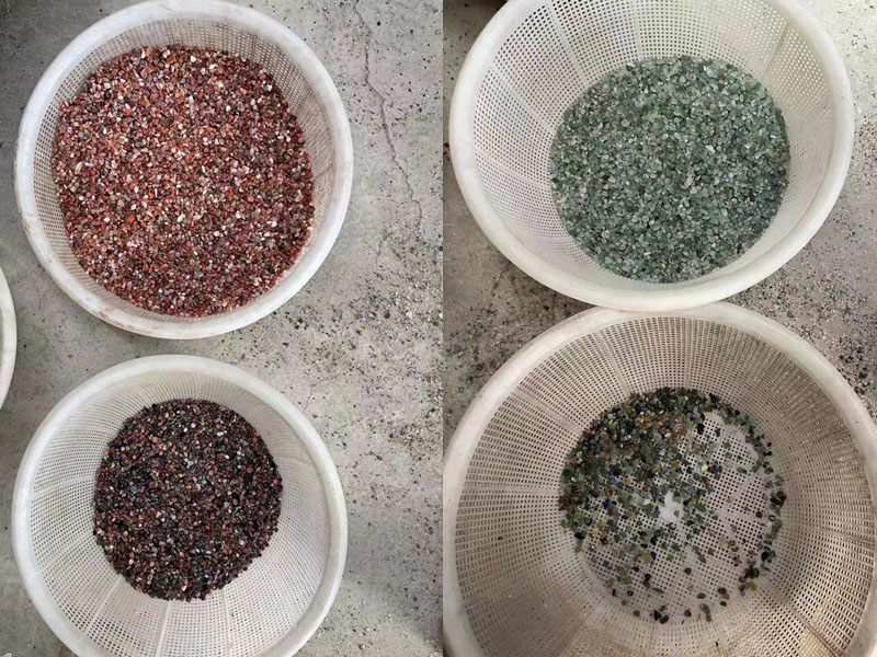 智能彩色寶石色選機(jī)分選系統(tǒng)由出料斗、高速電磁閥、空氣壓縮機(jī)及空氣過(guò)濾凈化器等附件組成。 出料斗由 前后兩個(gè)腔組成 ,按照自定義色選模式分離被色選物料的成品和次品。兩側(cè)配有吸塵口。 由 于被選物料在經(jīng)過(guò)高速電磁閥噴射后動(dòng)能大, 因此出料斗空間要足夠大 ,并且在物料與出料 斗接觸部位采取減震措施。防止被選物料反彈二次進(jìn)入 CCD 鏡頭探測(cè)區(qū)內(nèi),造成誤選現(xiàn)象發(fā)